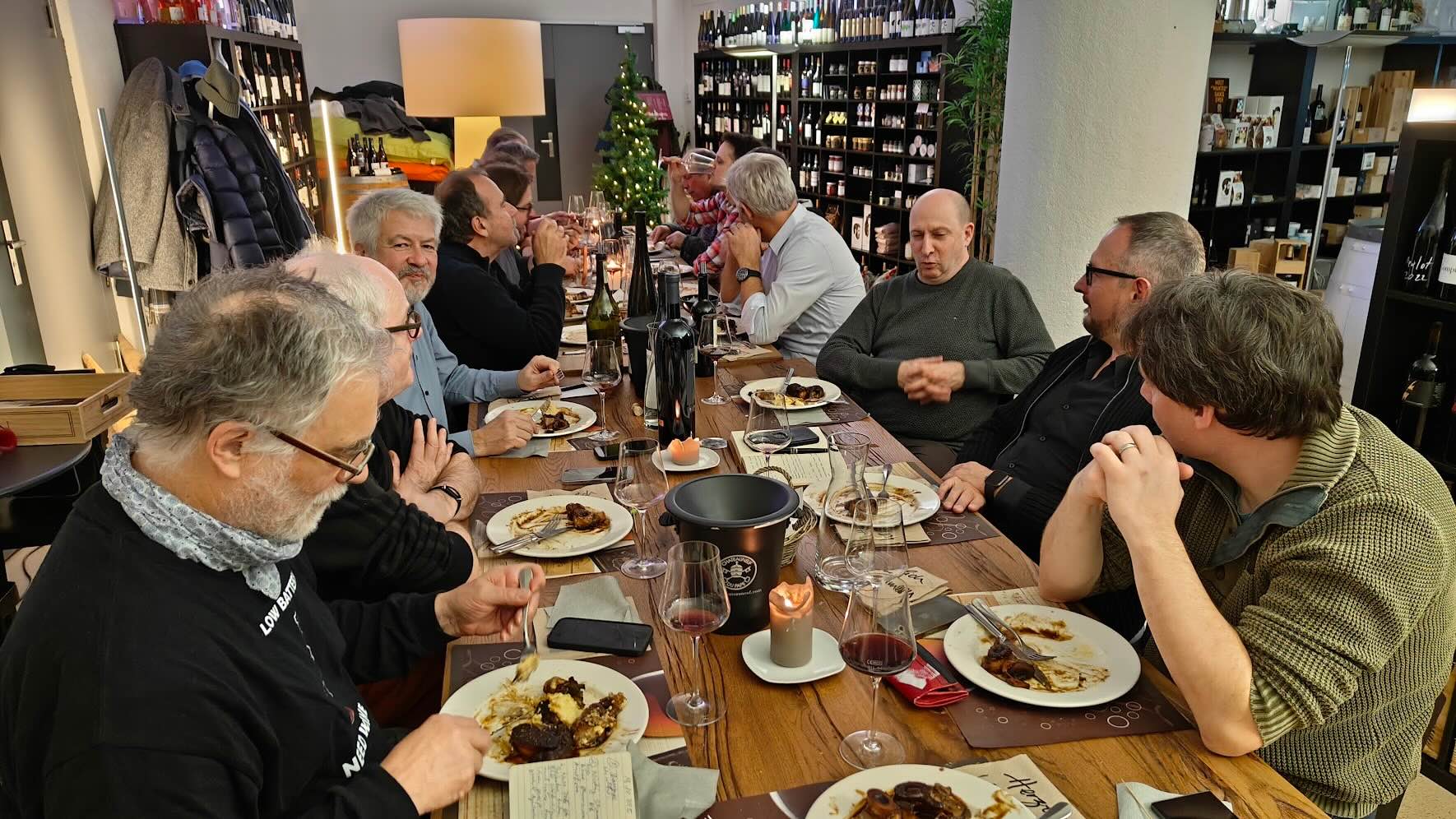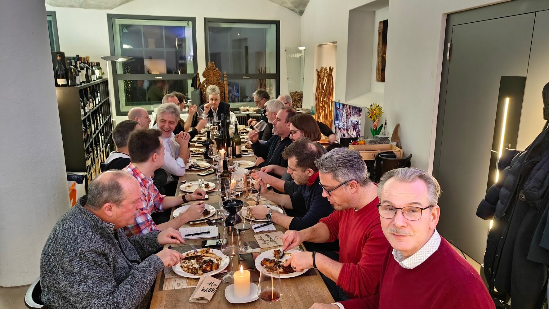 Tolle Weihnachtsfeier auch dieses Jahr mit auserwählten Weinen, leckerem Essen (vielen Dank, Roman und Otti) und guter Stimmung.