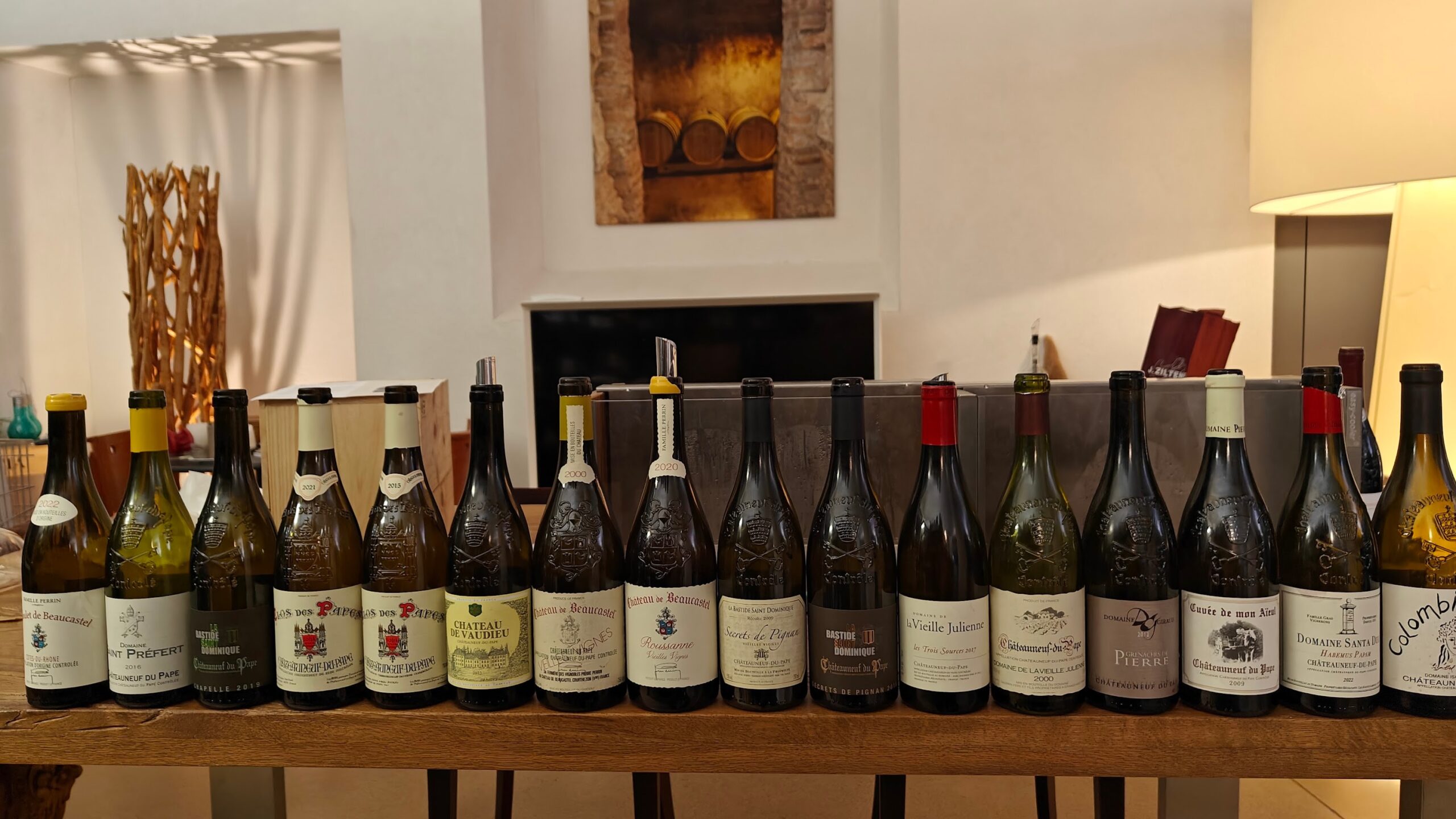 Beaucastel Vieilles Vignes blanc 2000: Die Nase schnuppert Äpfel, Birnenkompott, Honig, leichte Medicinalnoten; am Gaumen Druck mit Birnen, Birnbrot, Apfelwähe, Tee, Lindenblüten, Baumnüsse, kontrovers zwischen toll und wäh!