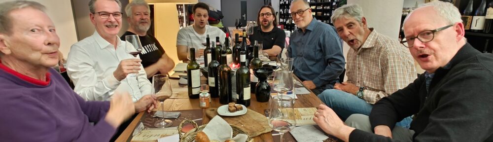 Pinot Noir 2011 vom Pfaffen/Calander, Sprecher von Bernegg (Herrschaft): Kork? ja, nein, ja … 2 Tage später Nachkontrolle: niet – kein Zapfen, Wein noch frisch und wirkt blutjung. … Bratensauce – nicht bei der Nachdegustation, nussig, Kaffee. Am Gaumen Holz und zerrig, junge Baumnüsse, laktisch, Joghurt. Noch 100 Jahre warten 😉