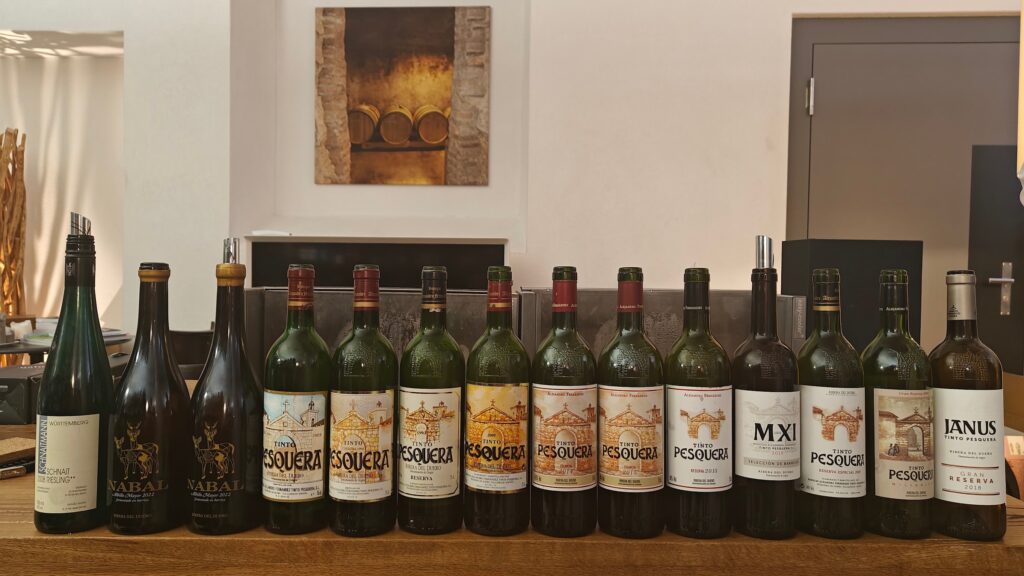 Die Degustierten Weine – Einstieg Riesling, Württemberg; Rieber del Duero, weiss; Rot Tinto Pesquera: